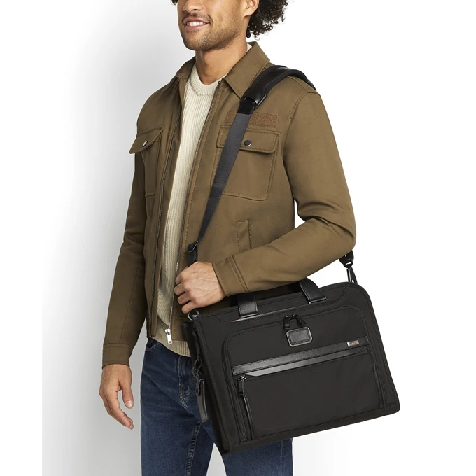 Op zoek naar een nieuwe aktetas? Misschien voldoet deze tas uit de Alpha serie van Tumi wel helemaal aan jouw wensen. Ideaal voor werk, maar ook uitstekend te gebruiken als tas voor dagelijks gebruik, waar je ook je laptop op een veilige manier in mee kunt nemen. De aktetas is gemaakt van nylon en heeft een effen patroon. Deze Tumi tas is voorzien van een geïntegreerd laptopvak, geschikt voor een laptop van maximaal . Wil je 100% zeker weten dat je laptop ook echt past? Meet dan de buitenafmeting van je laptop even op. Deze dient kleiner te zijn dan de buitenafmetingen van deze tas (de buitenafmetingen van deze aktetas zijn H 32 x B 7.5 x D 41.5). Op deze tas wordt 5 jaar garantie gegeven.